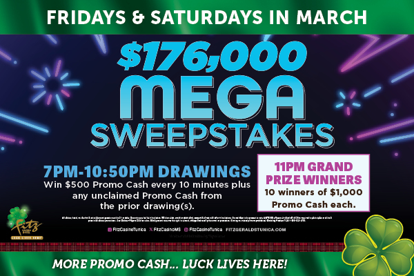 Win $500 Promo Cash every 10 minutes plus any unclaimed Promo Cash from the prior drawing(s).