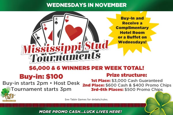 Buy-In and Receive a Complimentary Hotel Room or a Buffet on Wednesdays!