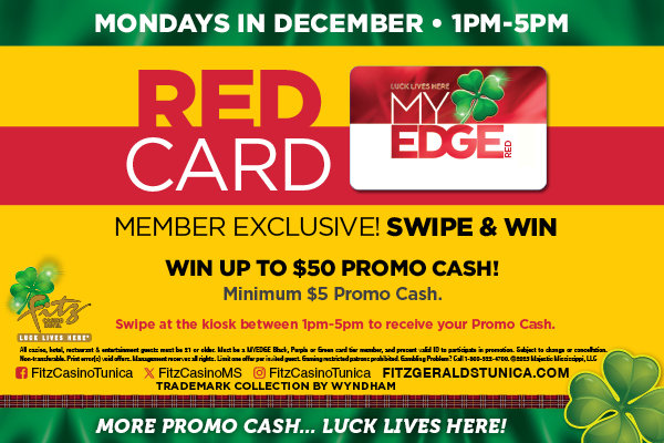 Calling all Red Card Members - Come Swipe your card Mondays in December. Win up to $50 Promo Cash.
