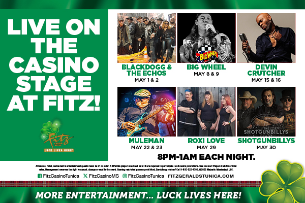 Lineup for entertainment in May on our Casino Stage bar!
