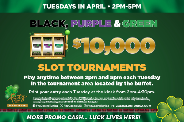 Calling all Black, Purple & Green card players to our $10,000 Slot Tournament on Tuesdays in April.