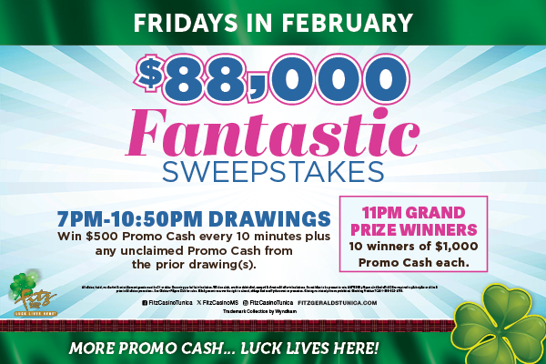 Win $500 promo cash every 10 minutes plus any unclaimed promo from 7pm-10:50pm