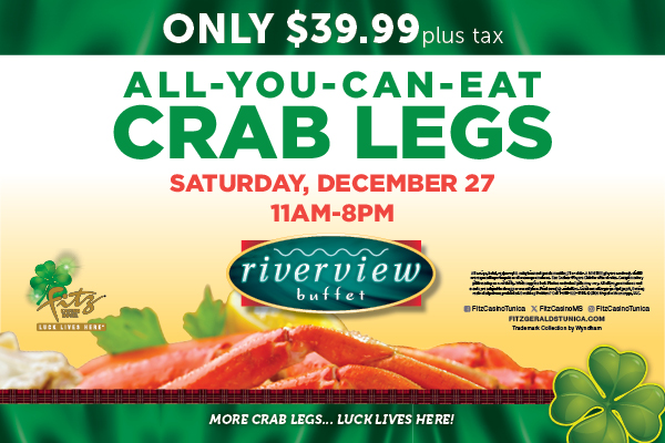 Mark your calendars and set your alarms for Fitz' All-You-Can-Eat Crab Legs Buffet on Saturday, December 27th. Enjoy your favorite buffet from 11am-8pm - ONLY $39.99