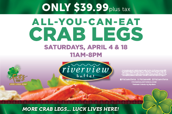 Mark your calendars and set your alarms for Fitz' All-You-Can-Eat Crab Legs Buffet on Saturday, April 4th & 18th. Enjoy your favorite buffet from 11am-8pm - ONLY $39.99