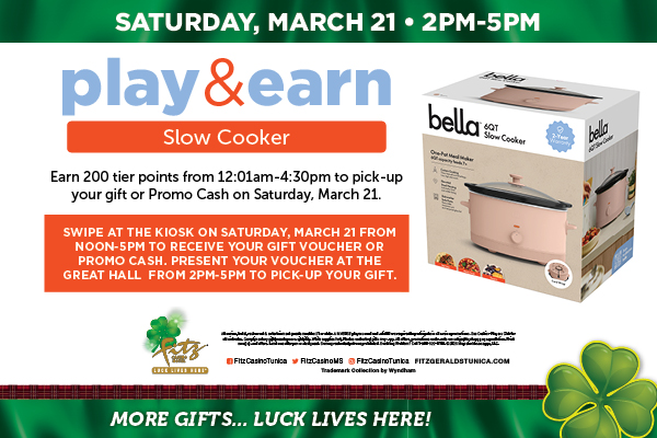 Earn 200 tier points from 12:01am-4:30pm to pick-up your gift or Promo Cash on March 21st.