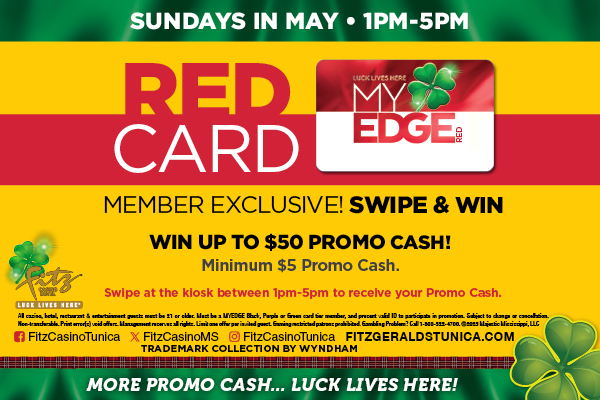 Calling all Red Card Members - Come Swipe your card Sundays in May. Win up to $50 Promo Cash.